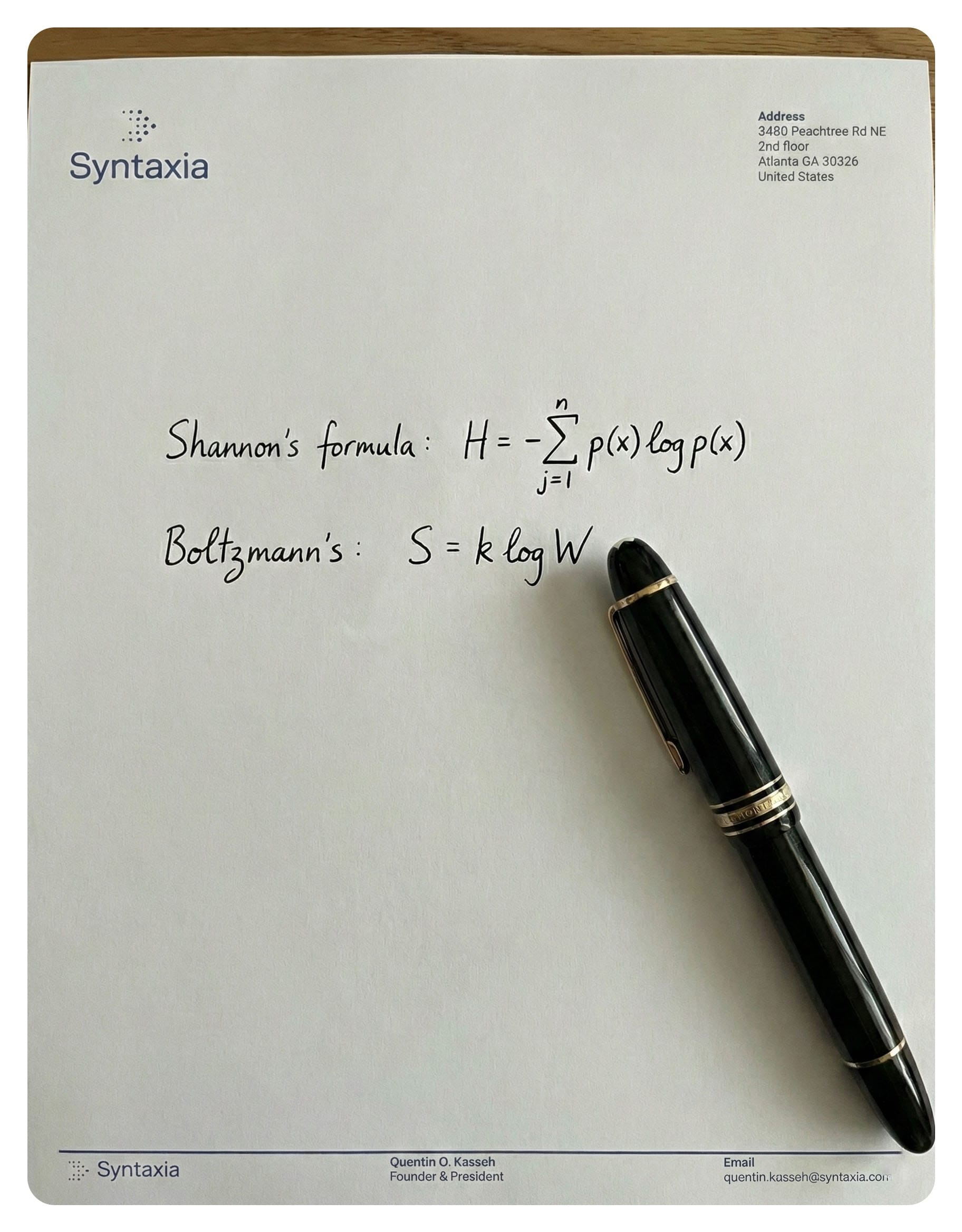 Shannon needed a mathematical formula to capture this. He derived one. Then he showed the derivation to John von Neumann, who told him to call it "entropy" because the formula was identical to Boltzmann's thermodynamic entropy.